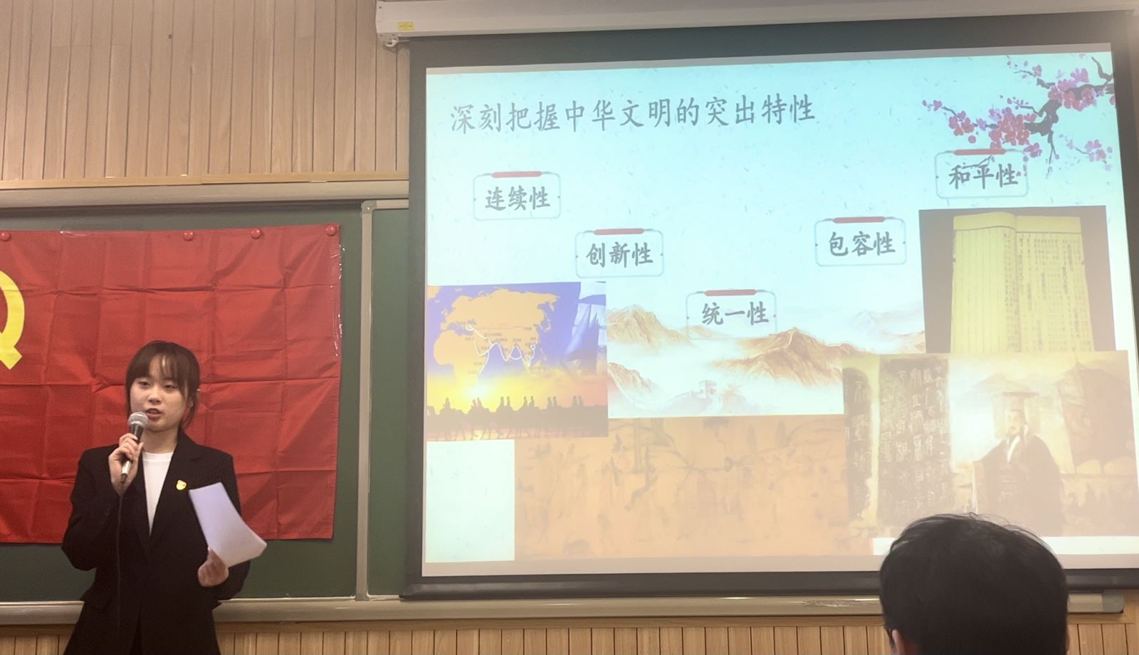 首先,支部全体党员认真学习了习近平总书记在文化传承发展座谈会上的重要讲话。习近平总书记从中华文明的突出特性、“两个结合”的重大意义、新时代文化使命三个层面展开论述,全面分析了推进中国特色社会主义文化建设,建设中华民族现代文明这个重大问题,提出了“创造人类文明新形态”这一伟大目标。