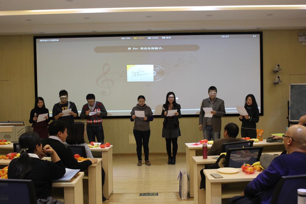 学院教工还准备了轻松欢快的文艺节目:MBA教育中心四位帅气小伙给大家带来了网络神曲《PPAP》的搞笑舞蹈;办公室行政老师则带来了既唱又舞、充满无限温馨的《宠爱》;人力系、运营管理系与战略系的老师们则带来了别开生面的方言版和普通话版的《再别康桥》;有学院外籍教师参与的小品《洋大夫义诊记》带来了不同文化碰撞所引发的欢乐;耿勇老师为大家带来了一曲深情满满的《父亲的草原母亲的河》;营销系特别准备的《闻鸡起舞》欢乐舞蹈则把大家带入了2017鸡年的新春气氛中。此外,一则猜字游戏考验起了同仁之间的合作与默契,共同牵手迈入新的一年。