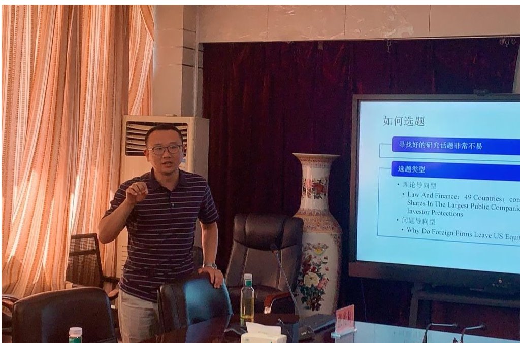 期间,两院开展了学术交流活动。市场营销系顾雷雷副教授以《从0到1:用Stata软件做实证研究》为题对国际经贸学院的在职老师和硕博学生进行了为期两天的实证方法培训,本次培训是2021年培训活动的延续,并做了题为《数字经济时代的货币政策传导——基于市场扩张和供应链资金占用的视角》的学术讲座。