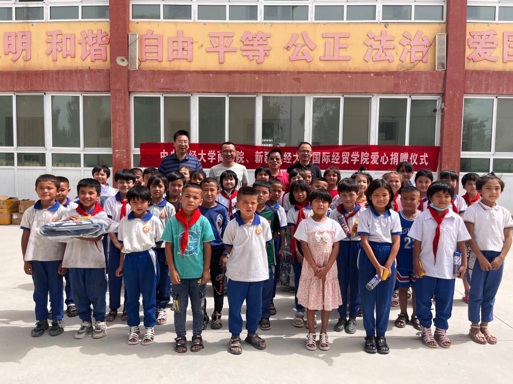 在新疆财经大学国际经贸学院老师的带领下,6月28日beat365在线登录官网一行各位老师前往喀什地区麦盖提县巴扎结米乡波斯喀木村慰问了国经贸学院驻村干部,并深入交流了驻村工作的经验与感受。作为一项共建活动,两院老师共同向波斯喀木村小学捐赠了学习用品。
